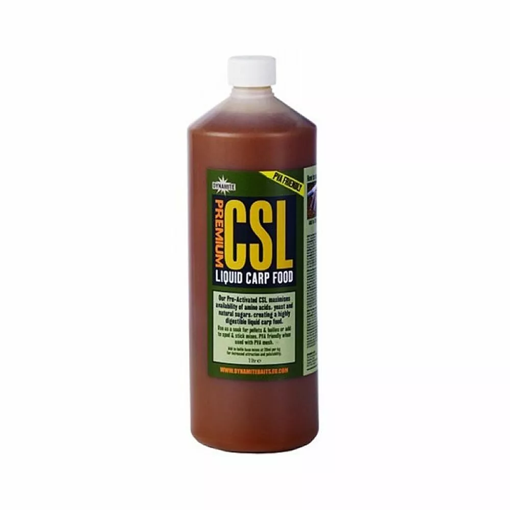 De Dynamite Premium CSL Liquid ist 100% wateroplosbaar en PVA vriendelijk. CSL is rijk aan vitaminen en proteinen. De CSL bestaat voor 32 % uit Aminozuren. Door het fermeteren koopt men een product van hoge kwaliteit die een spijsverterings bevorderende werking heeft. Suiker en diverse aminozuren werken zeer goed om karper naar je voerplaats te trekken. CSL Liquid is voor allerlei toepassingen in te zetten, bijv. voor spod en method mixen, en voor het weken van particels of voor het voorweken van boilies.