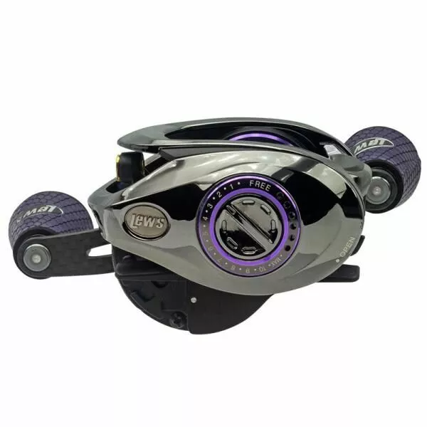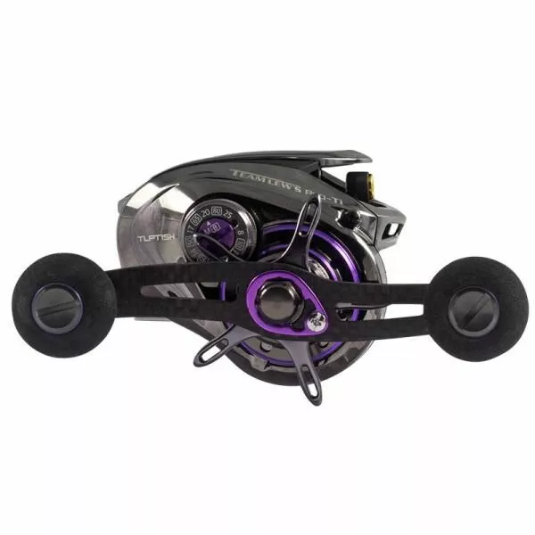 De Lew’s Pro Ti SLP baitcast reel is het paradepaardje onder de baitcast reel serie van Lew’s. De body van deze reels is gemaakt van aluminium die gegoten is uit één stuk, hetzelfde geld voor de zijplaten. De buitenzijde is afgewerkt met een titanium finish. De spoel van deze baitcaster is gemaakt van een Aircraft Grade Duralumin Titanium dat dubbel geanodiseerd is. Door de U vorm van de spoel wordt de lijnverdeling perfect uitgevoerd. Beschikt over 11 beschermde RVS lagers. Het QuietCast ACB remsysteem is magnifiek en zeer fijn in te stellen. De slip bestaat uit Carbon fiber en heeft een slipkracht van 20lb.